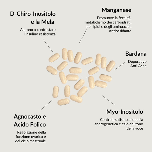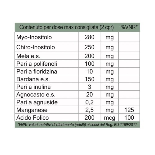 • D-Chiro-Inositol and Apple extract promote glycemic index and body weight control, counteracting insulin resistance and excess weight.